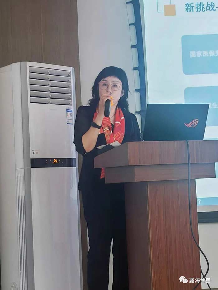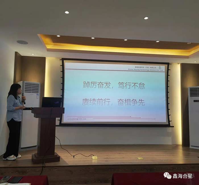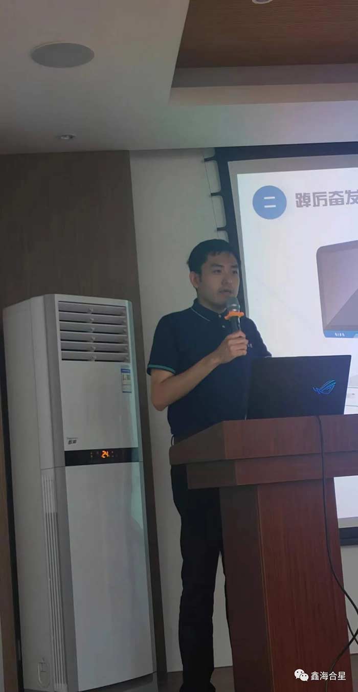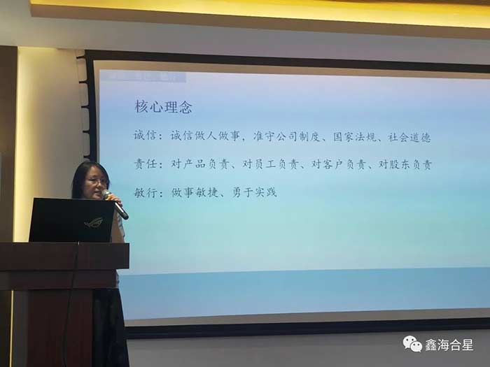 鑫海合星財務總監王玉華女士對財務上半年工作進行總結匯報,鑫海合星發票根據相關規定改制全電發票、報稅和申請高企等工作,然后對財務和鑫海人做出下半年希冀。
