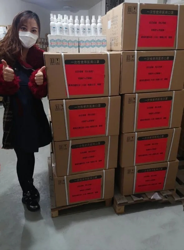 王玉萍董事長又采購一批洗手液等防護物資,和口罩一起向大連、錦州等5家醫院進行了捐贈。